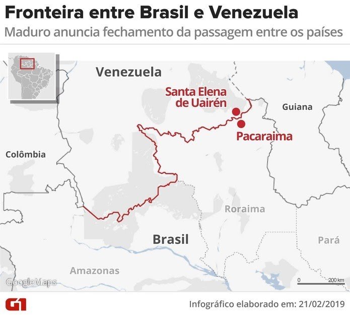 Pacaraima é a cidade brasileira onde o governo do Brasil e a oposição ao chavismo liderada pelo autoproclamado presidente da Venezuela, Juan Guaidó, estabeleceram ponto de coleta para ajuda humanitária. Os carregamentos de comida, remédios e itens de higiene deveriam chegar neste sábado, mas o regime de Nicolás Maduro fechou as fronteiras com o Brasil. Houve protestos ao longo do dia.