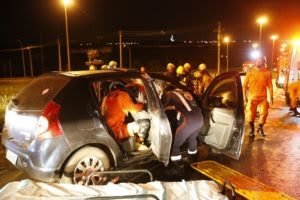 Em um dos veículos, um Honda Civic, o motorista foi retirado das ferragens pelos militares. Francisco Assis Alves, 74 anos, foi transportado para o Hospital de Base com trauma na coluna, hemorragia interna e lesão nos rins.